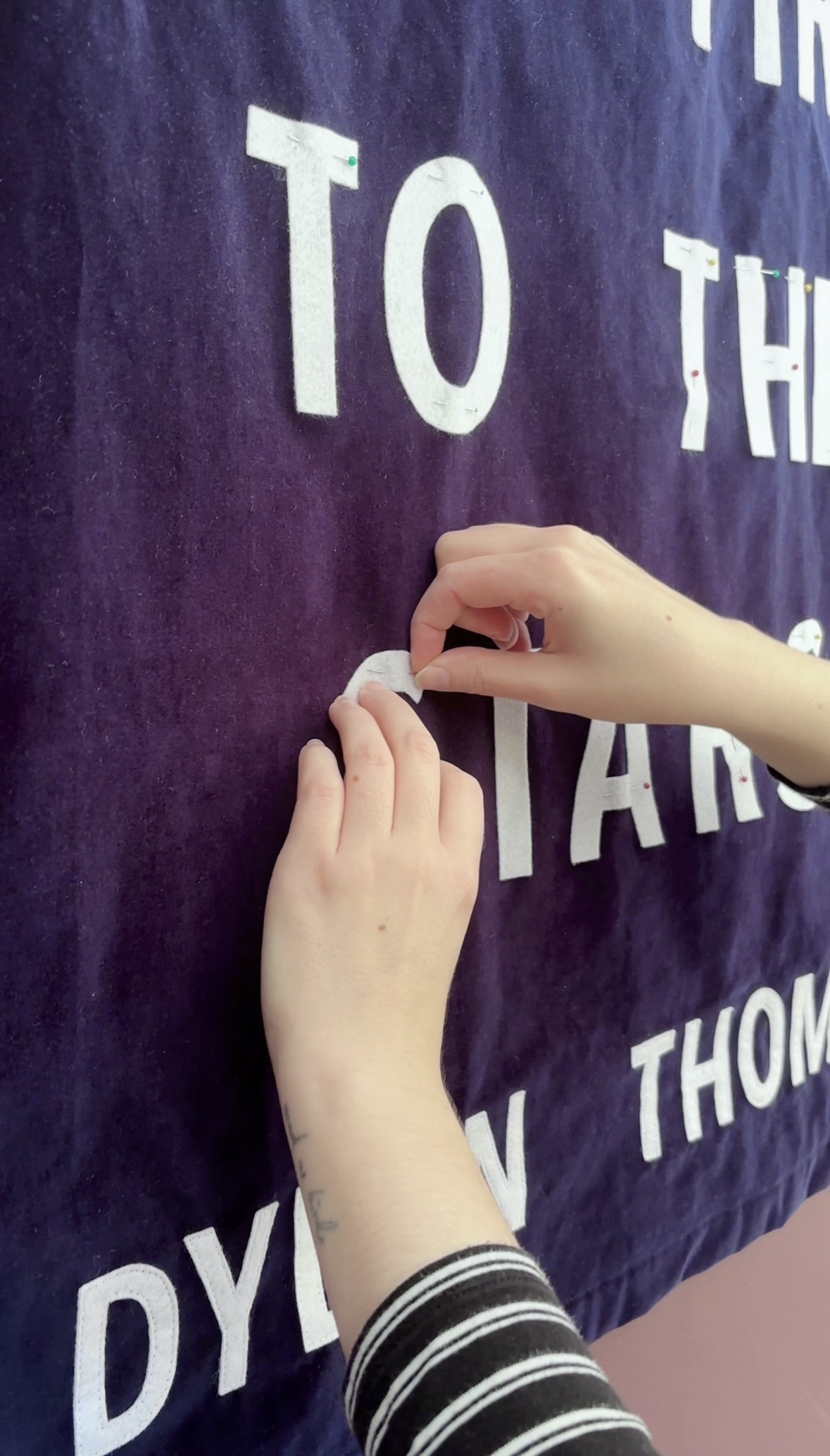 I also have my own personal textile-based art practice, scaling up small intimate handwritten notes into big celebrations of vulnerability and have been very lucky to have pieces in several exhibitions.