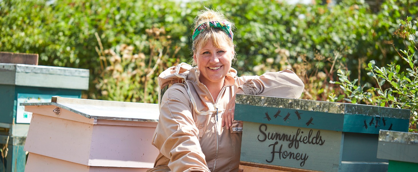 My business is Sunnyfields Apiaries Limited. I will have been working for myself for five years in a couple of months’ time. The aim of my business is to help educate people about bees through the use of the honey bee as a window into the world of pollinators.